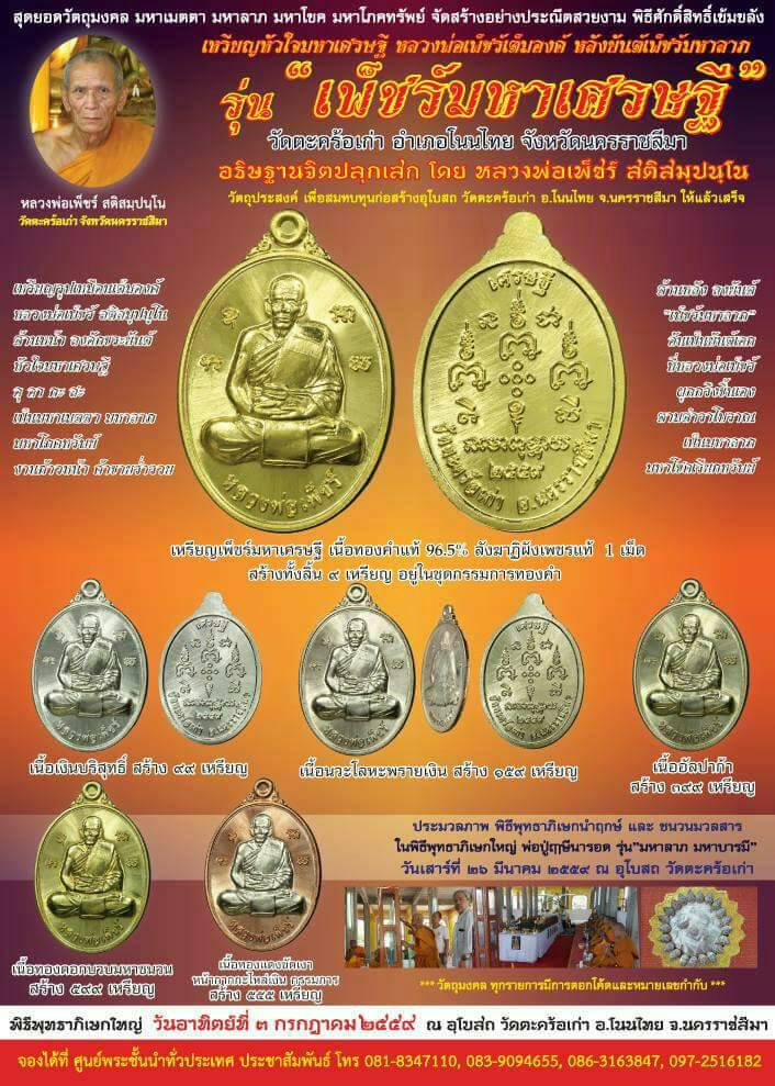 เหรียญเงินหน้าทองคำ รุ่นเพ็ชร์มหาเศรษฐี หลวงพ่อเพ็ชร์ สติสมฺปญฺโน วัดตะคร้อเก่า อ.โนนไทย นครราชสีมา 2559 ตอกโค๊ต หมายเลข ๑๖ เหรียญสวย เงาวาว ซีลเดิม กล่องกำมะหยี่ ตรงตามรูป